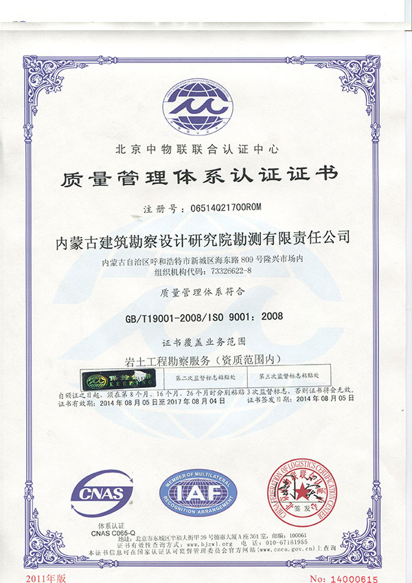 • 內蒙古建筑勘察設計研究院勘測有限責任公司,是全國首家完成 轉企建制的省級建筑勘察設計單位。公司前身為內蒙古建筑勘察 設計研究院勘測分院, 成立于1954年 ,經過六十多年的發展, 現已成為全區技術力量雄厚、專業設置齊全的集巖土工程勘察 、 設計、治理、檢測、監理、咨詢、水文地質勘查、工程測量、科 研為一體的綜合性企業 ... ... [查看詳情]